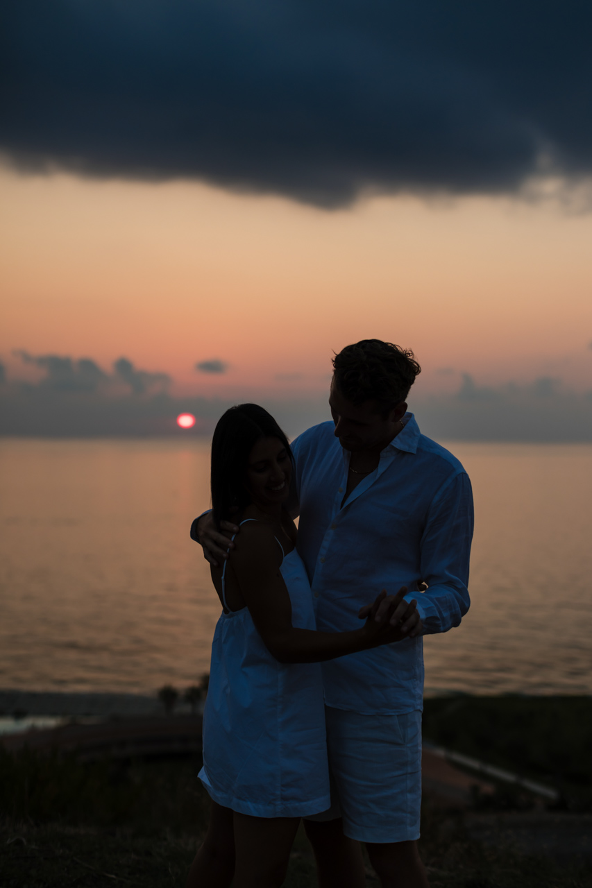Italo-americani, legatissimi alle loro radici in Calabria, hanno scelto la Spiaggia del Tono a Capo Vaticano per il loro engagement shooting, un luogo che per loro ha sempre avuto un significato speciale. Il tramonto sullo Stromboli ci ha regalato una luce calda e avvolgente, perfetta per celebrare un amore autentico e pieno di complicità.